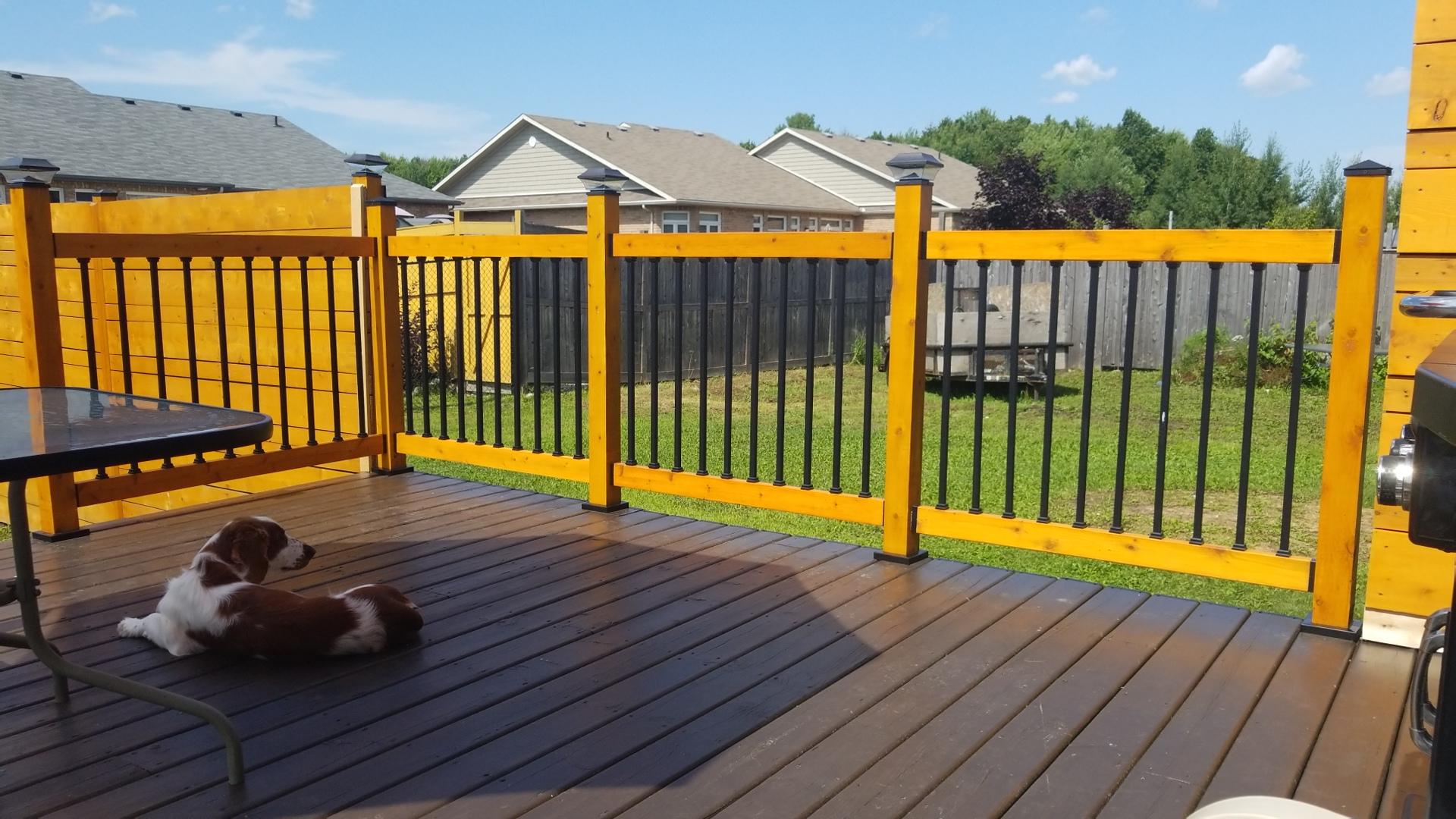 One of the most striking elements of this project is the railing system. John used Snap’n Lock™ Square Balusters — a favorite for DIYers and contractors alike — to give the deck a clean, minimalist look. The slim, black balusters stand out beautifully against the golden wood rails, adding depth and modern contrast without overwhelming the design.